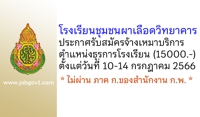 โรงเรียนชุมชนผาเลือดวิทยาคาร รับสมัครจ้างเหมาบริการ ตำแหน่งธุรการโรงเรียน ตั้งแต่วันที่ 10-14 กรกฎาคม 2566