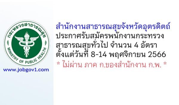 สำนักงานสาธารณสุขจังหวัดอุตรดิตถ์ รับสมัครพนักงานกระทรวงสาธารณสุขทั่วไป 4 อัตรา ตั้งแต่วันที่ 8-14 พฤศจิกายน 2566