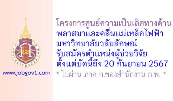 โครงการศูนย์ความเป็นเลิศทางด้านพลาสมาและคลื่นแม่เหล็กไฟฟ้า มหาวิทยาลัยวลัยลักษณ์ รับสมัครผู้ช่วยวิจัย ตั้งแต่บัดนี้ถึง 20 กันยายน 2567