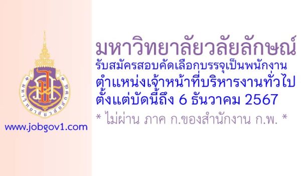 มหาวิทยาลัยวลัยลักษณ์ รับสมัครสอบคัดเลือกบรรจุเป็นพนักงาน ตำแหน่งเจ้าหน้าที่บริหารงานทั่วไป ตั้งแต่บัดนี้ถึง 6 ธันวาคม 2567