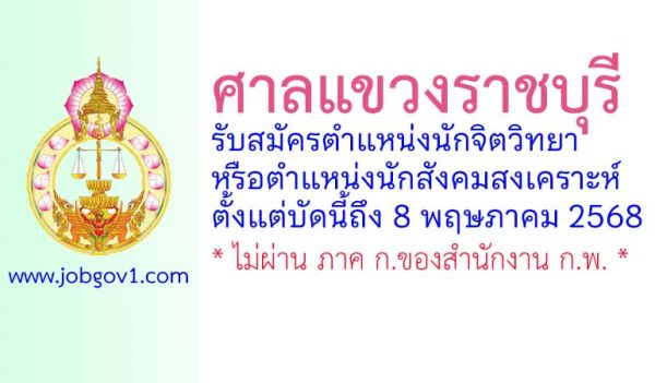 ศาลจังหวัดราชบุรี รับสมัครพนักงานจ้างเหมาบริการ ตำแหน่งนักจิตวิทยาหรือนักสังคมสงเคราะห์ ตั้งแต่บัดนี้ถึง 9 ธันวาคม 2568