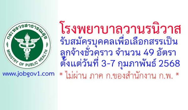 โรงพยาบาลวานรนิวาส รับสมัครบุคคลเพื่อเลือกสรรเป็นลูกจ้างชั่วคราว 49 อัตรา ตั้งแต่วันที่ 3-7 กุมภาพันธ์ 2568