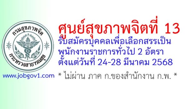 ศูนย์สุขภาพจิตที่ 13 รับสมัครบุคคลเพื่อเลือกสรรเป็นพนักงานราชการทั่วไป 2 อัตรา ตั้งแต่วันที่ 24-28 มีนาคม 2568