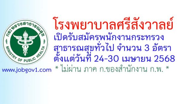 โรงพยาบาลศรีสังวาลย์ รับสมัครพนักงานกระทรวงสาธารณสุขทั่วไป 3 อัตรา ตั้งแต่วันที่ 24-30 เมษายน 2568