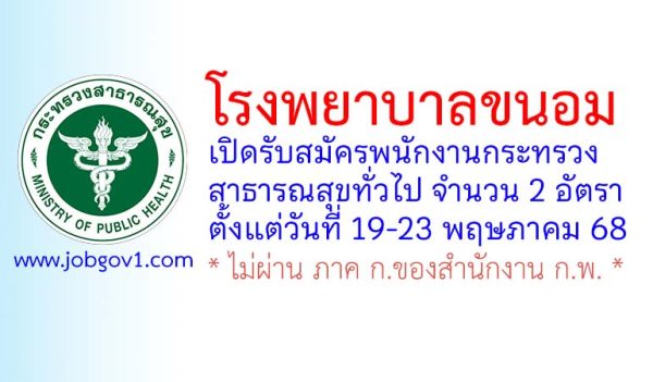 โรงพยาบาลขนอม รับสมัครพนักงานกระทรวงสาธารณสุขทั่วไป 2 อัตรา ตั้งแต่วันที่ 19-23 พฤษภาคม 2568