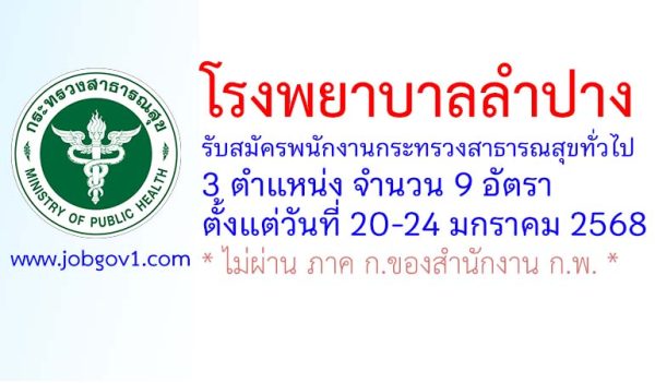 โรงพยาบาลลำปาง รับสมัครพนักงานกระทรวงสาธารณสุขทั่วไป 9 อัตรา ตั้งแต่วันที่ 20-24 มกราคม 2568
