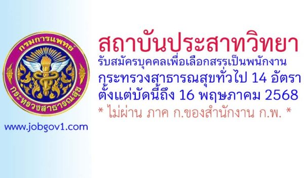 สถาบันประสาทวิทยา รับสมัครพนักงานกระทรวงสาธารณสุขทั่วไป 14 อัตรา ตั้งแต่บัดนี้ถึง 16 พฤษภาคม 2568