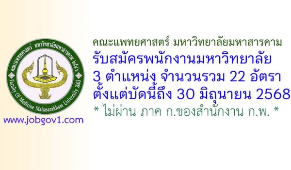 คณะแพทยศาสตร์ มหาวิทยาลัยมหาสารคาม รับสมัครพนักงานมหาวิทยาลัย 22 อัตรา ตั้งแต่บัดนี้ถึง 30 มิถุนายน 2568