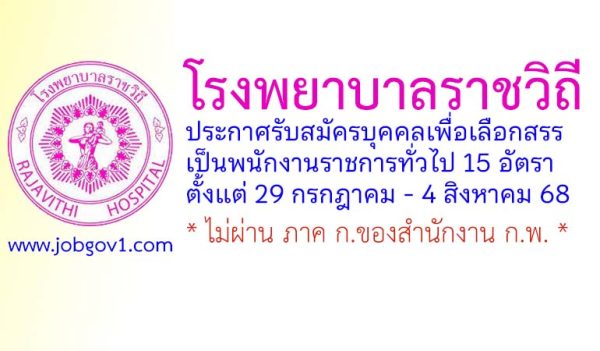 โรงพยาบาลราชวิถี รับสมัครบุคคลเพื่อเลือกสรรเป็นพนักงานราชการทั่วไป 15 อัตรา ตั้งแต่ 29 กรกฎาคม – 4 สิงหาคม 2568