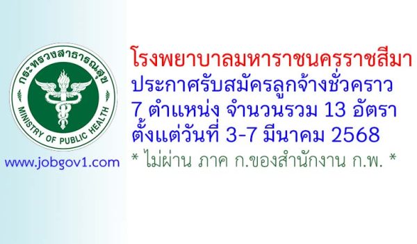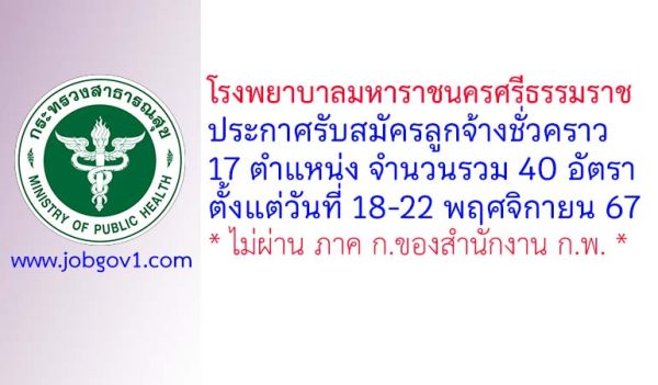 โรงพยาบาลมหาราชนครศรีธรรมราช รับสมัครลูกจ้างชั่วคราว 11 ตำแหน่ง 19 อัตรา ตั้งแต่วันที่ 31 ตุลาคม 2568 – 6 พฤศจิกายน 2568