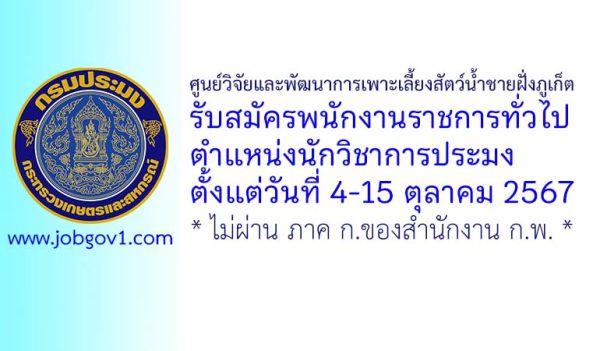 ศูนย์วิจัยและพัฒนาประมงทะเลสตูล รับสมัครพนักงานราชการทั่วไป ตำแหน่งนักวิชาการประมง