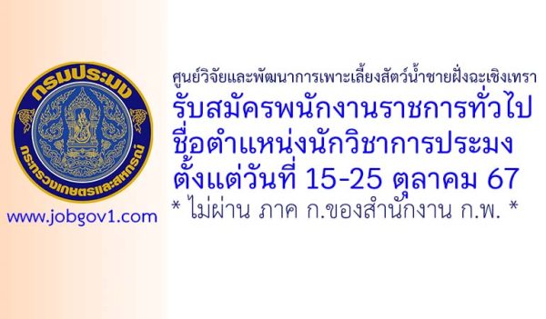ศูนย์วิจัยและพัฒนาการเพาะเลี้ยงสัตว์น้ำชายฝั่งฉะเชิงเทรา รับสมัครพนักงานราชการทั่วไป ตำแหน่งนักวิชาการประมง ตั้งแต่วันที่ 15-25 ตุลาคม 2567