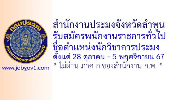 สำนักงานประมงจังหวัดลำพูน รับสมัครพนักงานราชการทั่วไป ตำแหน่งนักวิชาการประมง ตั้งแต่ 28 ตุลาคม – 5 พฤศจิกายน 2567