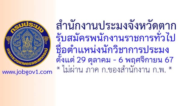 สำนักงานประมงจังหวัดตาก รับสมัครพนักงานราชการทั่วไป ตำแหน่งนักวิชาการประมง ตั้งแต่ 29 ตุลาคม – 6 พฤศจิกายน 2567