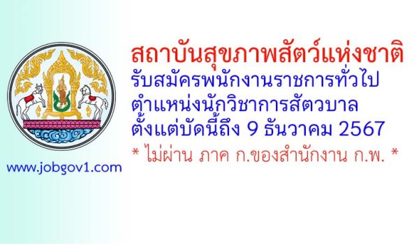 สถาบันสุขภาพสัตว์แห่งชาติ รับสมัครพนักงานราชการทั่วไป ตำแหน่งนักวิชาการสัตวบาล ตั้งแต่บัดนี้ถึง 9 ธันวาคม 2567