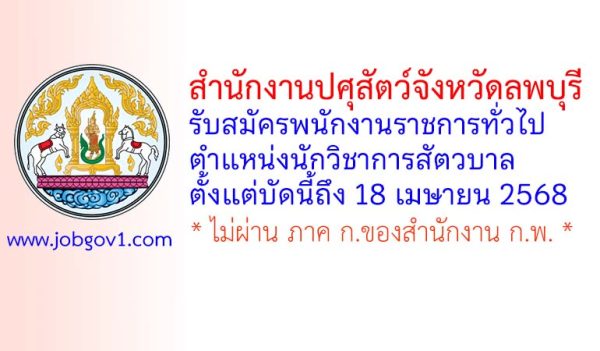 สำนักงานปศุสัตว์จังหวัดลพบุรี รับสมัครพนักงานราชการทั่วไป ตำแหน่งนักวิชาการสัตวบาล ตั้งแต่บัดนี้ถึง 18 เมษายน 2568