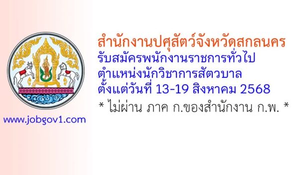 สำนักงานปศุสัตว์จังหวัดสกลนคร รับสมัครพนักงานราชการทั่วไป ตำแหน่งนักวิชาการสัตวบาล ตั้งแต่วันที่ 13-19 สิงหาคม 2568