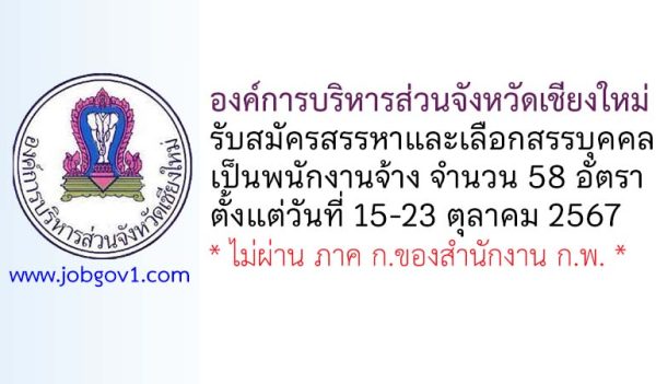 องค์การบริหารส่วนจังหวัดเชียงใหม่ รับสมัครสรรหาและเลือกสรรบุคคลเป็นพนักงานจ้าง 58 อัตรา ตั้งแต่วันที่ 15-23 ตุลาคม 2567