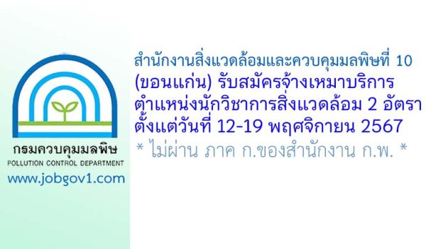 สำนักงานสิ่งแวดล้อมและควบคุมมลพิษที่ 10 (ขอนแก่น) รับสมัครจ้างเหมาบริการ ตำแหน่งนักวิชาการสิ่งแวดล้อม 2 อัตรา