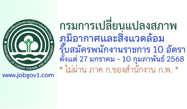 กรมการเปลี่ยนแปลงสภาพภูมิอากาศและสิ่งแวดล้อม รับสมัครบุคคลเพื่อเลือกสรรเป็นพนักงานราชการทั่วไป 10 อัตรา ตั้งแต่ 27 มกราคม – 10 กุมภาพันธ์ 2568