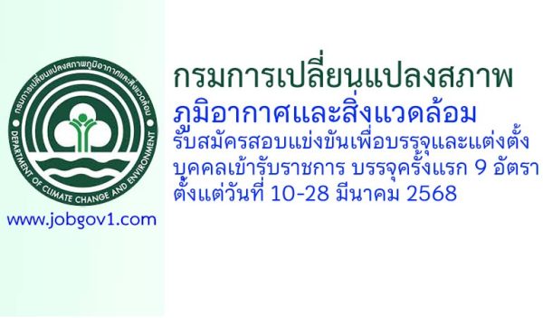 กรมการเปลี่ยนแปลงสภาพภูมิอากาศและสิ่งแวดล้อม รับสมัครสอบแข่งขันเพื่อบรรจุและแต่งตั้งบุคคลเข้ารับราชการ บรรจุครั้งแรก 9 อัตรา ตั้งแต่วันที่ 10-28 มีนาคม 2568