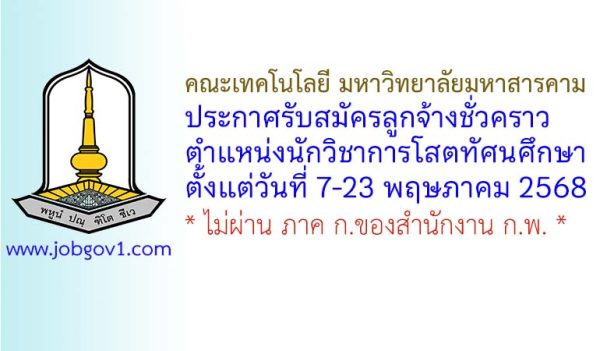 คณะเทคโนโลยี มหาวิทยาลัยมหาสารคาม รับสมัครลูกจ้างชั่วคราว ตำแหน่งนักวิชาการโสตทัศนศึกษา ตั้งแต่วันที่ 7-23 พฤษภาคม 2568