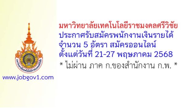 มหาวิทยาลัยเทคโนโลยีราชมงคลศรีวิชัย รับสมัครพนักงานเงินรายได้ 5 อัตรา ตั้งแต่วันที่ 21-27 พฤษภาคม 2568