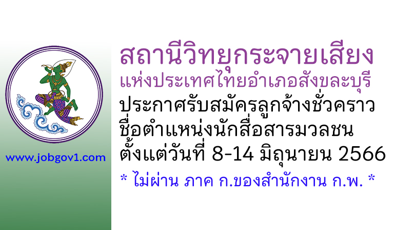 สถานีวิทยุกระจายเสียงแห่งประเทศไทยอำเภอสังขละบุรี รับสมัครลูกจ้างชั่วคราว ตำแหน่งนักสื่อสารมวลชน ตั้งแต่วันที่ 8-14 มิถุนายน 2566