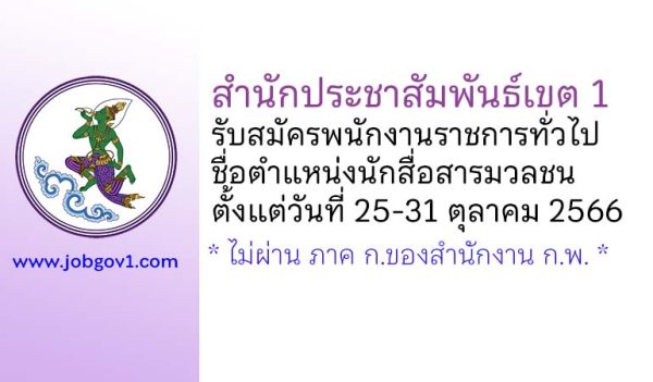 สำนักประชาสัมพันธ์เขต 1 รับสมัครพนักงานราชการทั่วไป ตำแหน่งนักสื่อสารมวลชน ตั้งแต่วันที่ 25-31 ตุลาคม 2566
