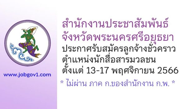 สำนักงานประชาสัมพันธ์จังหวัดพระนครศรีอยุธยา รับสมัครลูกจ้างชั่วคราว ตำแหน่งนักสื่อสารมวลชน ตั้งแต่วันที่ 13-17 พฤศจิกายน 2566