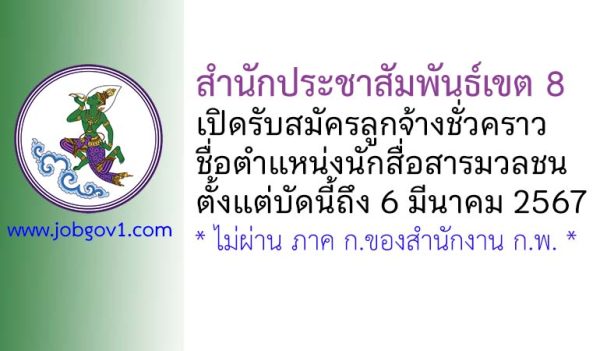 สำนักประชาสัมพันธ์เขต 8 รับสมัครลูกจ้างชั่วคราว ตำแหน่งนักสื่อสารมวลชน