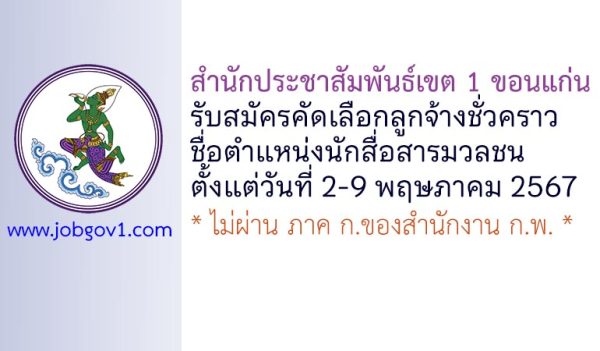 สำนักประชาสัมพันธ์เขต 1 ขอนแก่น รับสมัครลูกจ้างชั่วคราว ตำแหน่งนักสื่อสารมวลชน ตั้งแต่วันที่ 2-9 พฤษภาคม 2567