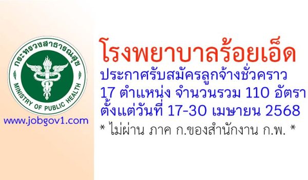 โรงพยาบาลร้อยเอ็ด รับสมัครลูกจ้างชั่วคราว 53 อัตรา ตั้งแต่วันที่ 21-31 กรกฎาคม 2568