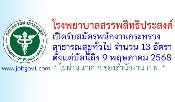 โรงพยาบาลสรรพสิทธิประสงค์ รับสมัครพนักงานกระทรวงสาธารณสุขทั่วไป 13 อัตรา ตั้งแต่บัดนี้ถึง 9 พฤษภาคม 2568