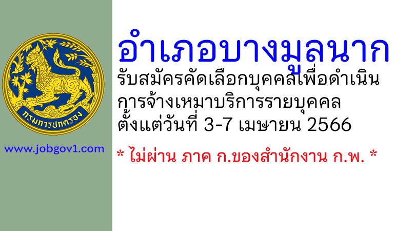 อำเภอบางมูลนาก รับสมัครคัดเลือกบุคคลเพื่อดำเนินการจ้างเหมาบริการรายบุคคล ตั้งแต่วันที่ 3-7 เมษายน 2566