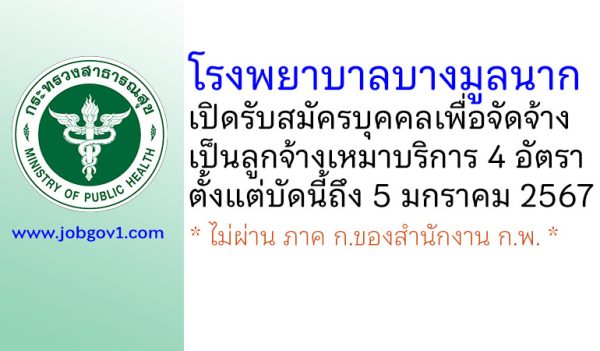 โรงพยาบาลบางมูลนาก รับสมัครลูกจ้างเหมาบริการ 4 อัตรา ตั้งแต่บัดนี้ถึง 5 มกราคม 2567