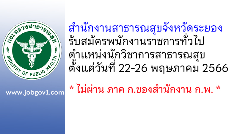 สำนักงานสาธารณสุขจังหวัดระยอง รับสมัครพนักงานราชการทั่วไป ตำแหน่งนักวิชาการสาธารณสุข ตั้งแต่วันที่ 22-26 พฤษภาคม 2566