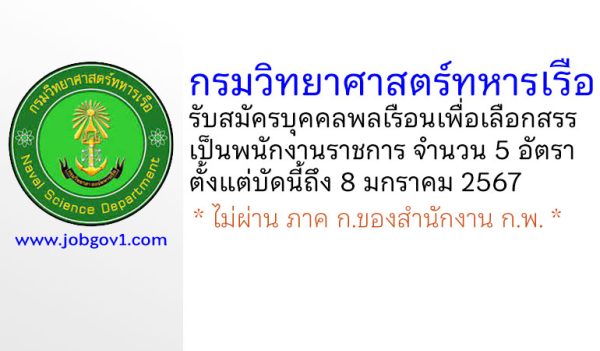 กรมวิทยาศาสตร์ทหารเรือ รับสมัครบุคคลพลเรือนเพื่อเลือกสรรเป็นพนักงานราชการ 5 อัตรา ตั้งแต่บัดนี้ถึง 8 มกราคม 2567