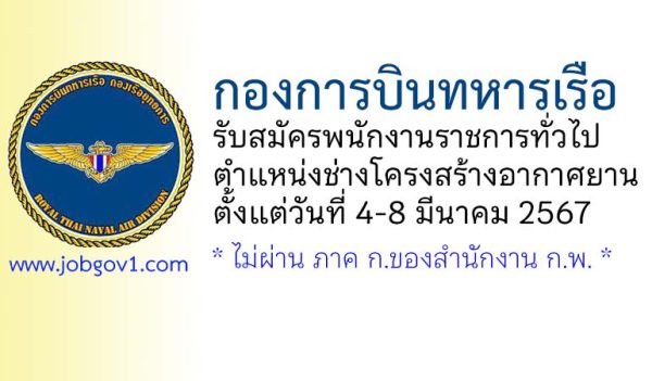 กองการบินทหารเรือ รับสมัครพนักงานราชการทั่วไป ตำแหน่งช่างโครงสร้างอากาศยาน ตั้งแต่ 4-8 มีนาคม 2567