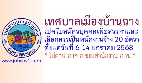 เทศบาลเมืองบ้านฉาง รับสมัครบุคคลเพื่อสรรหาและเลือกสรรเป็นพนักงานจ้าง 20 อัตรา ตั้งแต่วันที่ 6-14 มกราคม 2568