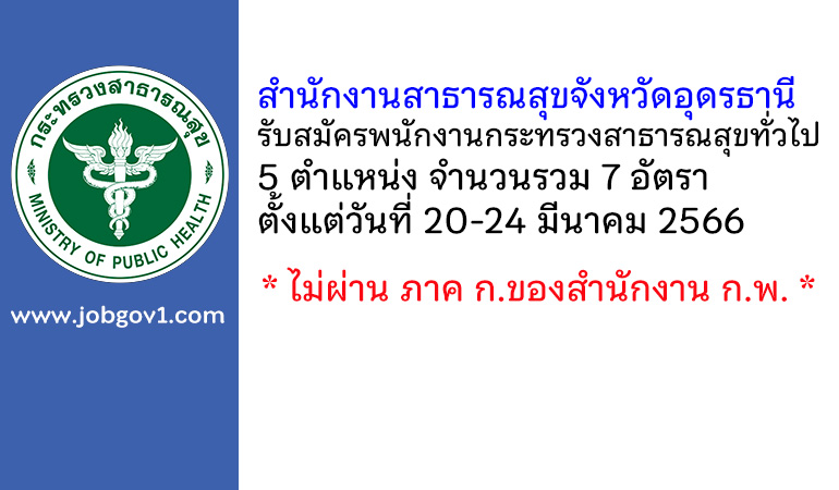 สำนักงานสาธารณสุขจังหวัดอุดรธานี รับสมัครพนักงานกระทรวงสาธารณสุขทั่วไป 7 อัตรา ตั้งแต่วันที่ 20-24 มีนาคม 2566
