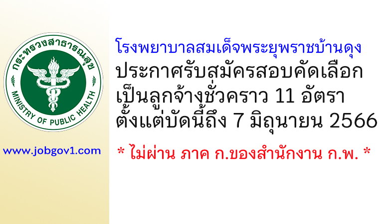 โรงพยาบาลสมเด็จพระยุพราชบ้านดุง รับสมัครสอบคัดเลือกเป็นลูกจ้างชั่วคราว 11 อัตรา ตั้งแต่บัดนี้ถึง 7 มิถุนายน 2566
