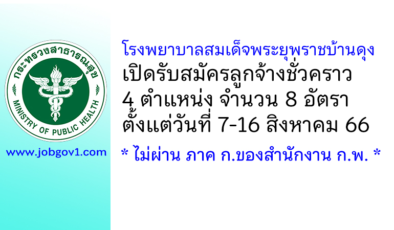 โรงพยาบาลสมเด็จพระยุพราชบ้านดุง รับสมัครลูกจ้างชั่วคราว 8 อัตรา ตั้งแต่วันที่ 7-16 สิงหาคม 2566