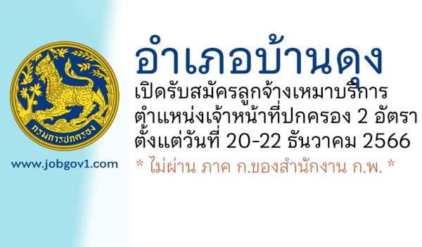 อำเภอบ้านดุง รับสมัครลูกจ้างเหมาบริการ ตำแหน่งเจ้าหน้าที่ปกครอง 2 อัตรา ตั้งแต่วันที่ 20-22 ธันวาคม 2566