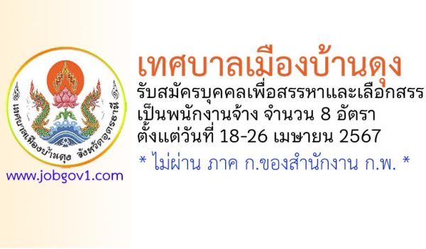 เทศบาลเมืองบ้านดุง รับสมัครบุคคลเพื่อสรรหาและเลือกสรรเป็นพนักงานจ้าง 8 อัตรา ตั้งแต่วันที่ 18-26 เมษายน 2567