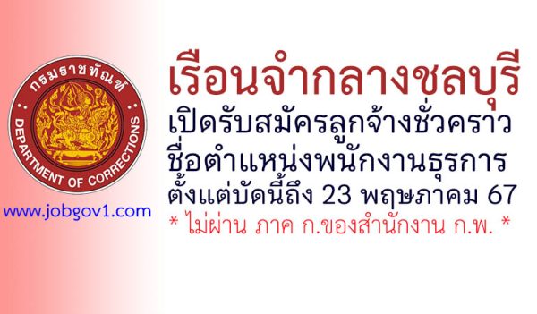 เรือนจำกลางชลบุรี รับสมัครลูกจ้างชั่วคราว ตำแหน่งพนักงานธุรการ ตั้งแต่บัดนี้ถึง 6 มิถุนายน 2568