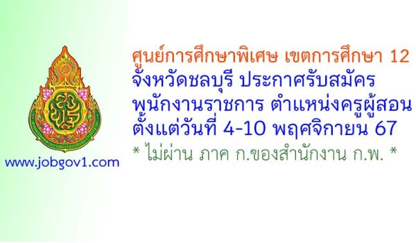 ศูนย์การศึกษาพิเศษ เขตการศึกษา 12 จังหวัดชลบุรี รับสมัครพนักงานราชการทั่วไป ตำแหน่งครูผู้สอน ตั้งแต่วันที่ 4-10 พฤศจิกายน 2567