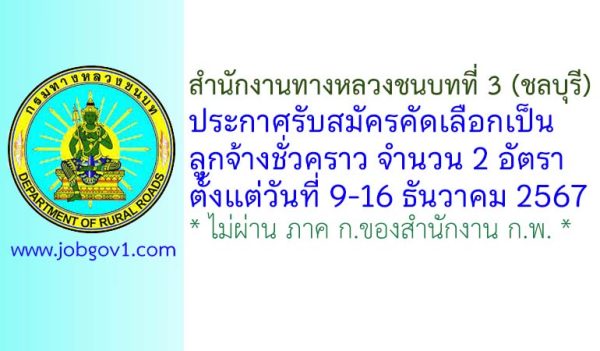 สำนักงานทางหลวงชนบทที่ 3 (ชลบุรี) รับสมัครคัดเลือกลูกจ้างชั่วคราว 2 อัตรา ตั้งแต่วันที่ 9-16 ธันวาคม 2567