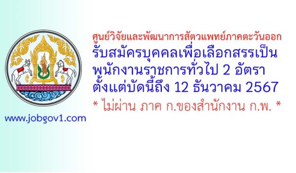 ศูนย์วิจัยและพัฒนาการสัตวแพทย์ภาคตะวันออก รับสมัครบุคคลเพื่อเลือกสรรเป็นพนักงานราชการทั่วไป 2 อัตรา ตั้งแต่บัดนี้ถึง 12 ธันวาคม 2567