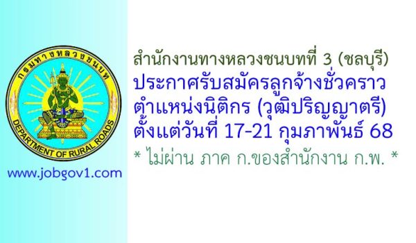 สำนักงานทางหลวงชนบทที่ 3 (ชลบุรี) รับสมัครลูกจ้างชั่วคราว ตำแหน่งนิติกร ตั้งแต่วันที่ 17-21 กุมภาพันธ์ 2568